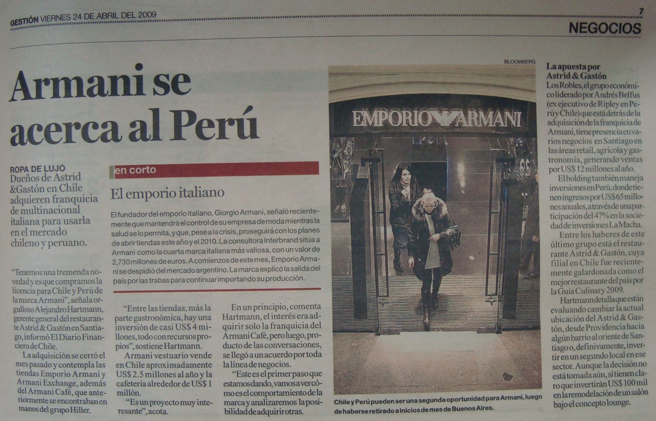 Dueños de Astrid & Gastón en Chile adquieren Franquicia de multinacional italiana para usarla en el mercado chileno y peruano.